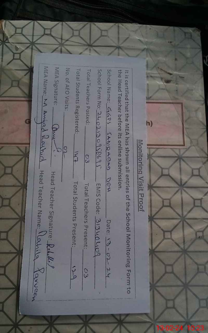 | EMIS Code: 31340409 | Name of School: GGPS SADIQ ABAD DEH | |||