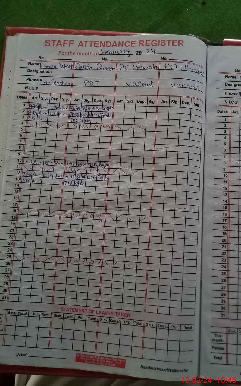 | Name: Hu**** As**** Designation: (School Headmaster's/Headmistress's) PST Phone/Cell Number: 03**** |