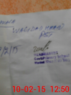 | Name: TE**** UL**** KH**** Designation: (School Headmaster's/Headmistress's) PST Phone/Cell Number: 03**** |