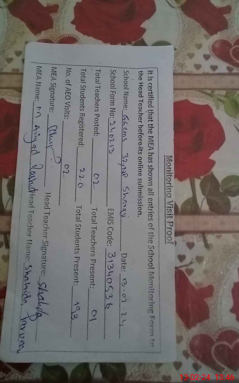 | EMIS Code: 31340536 | Name of School: GGCMS 32 NP SHARQI | |||