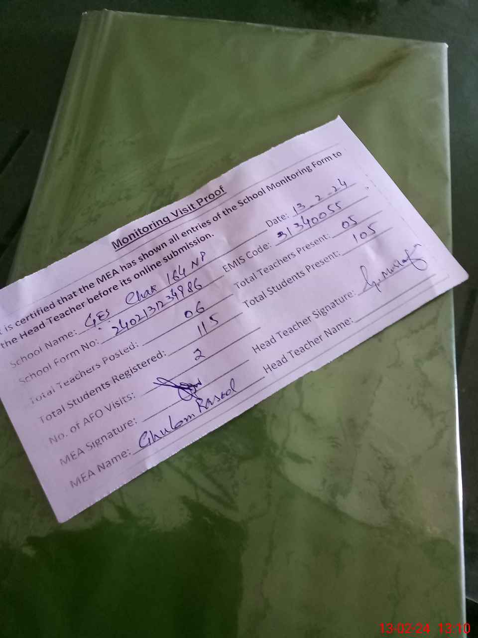 | EMIS Code: 31340055 | Name of School: GES CHAK NO 164/NP | |||