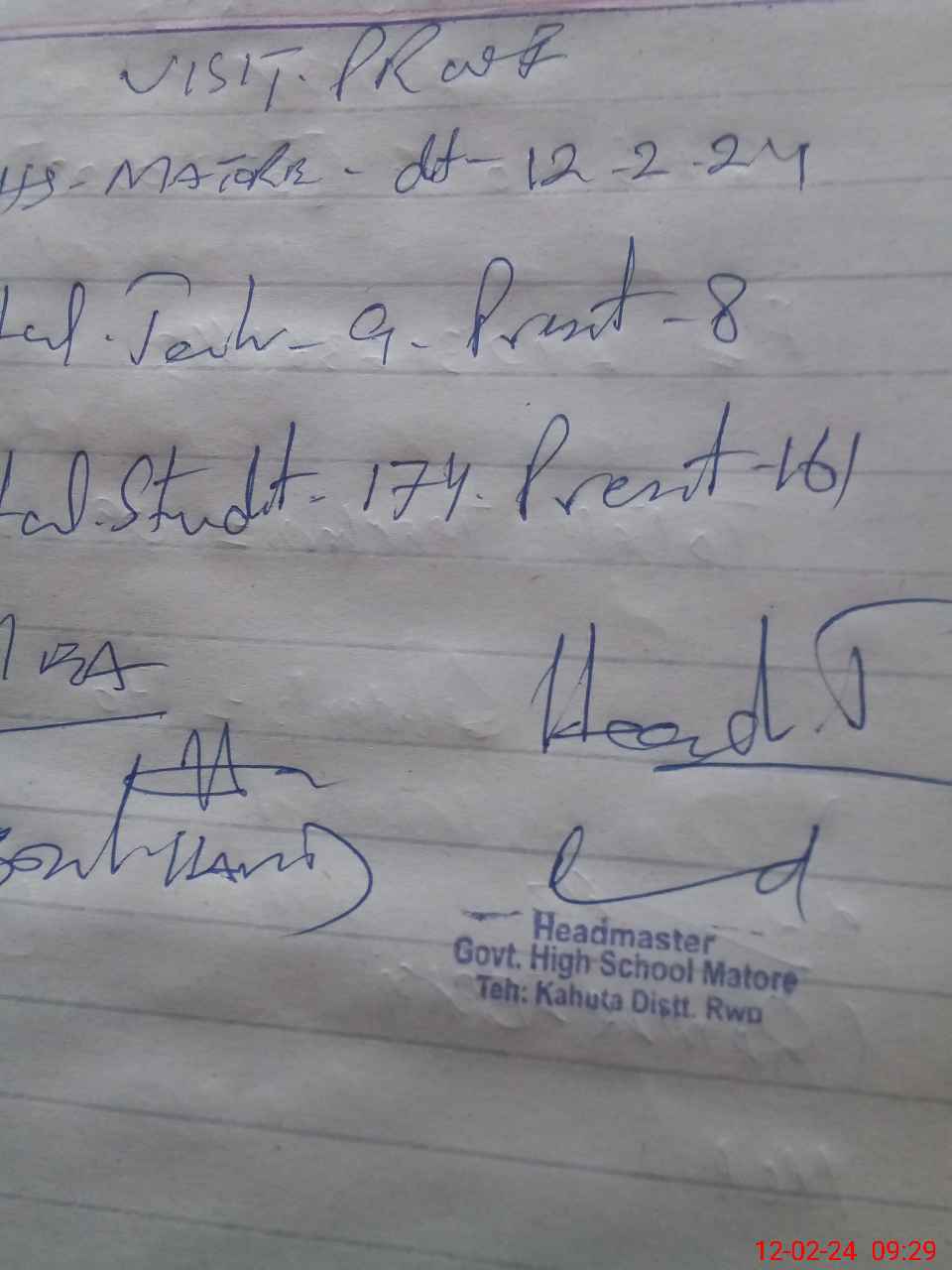 | Attendance Register | Head Teacher | MEA with School | Visit Proof |