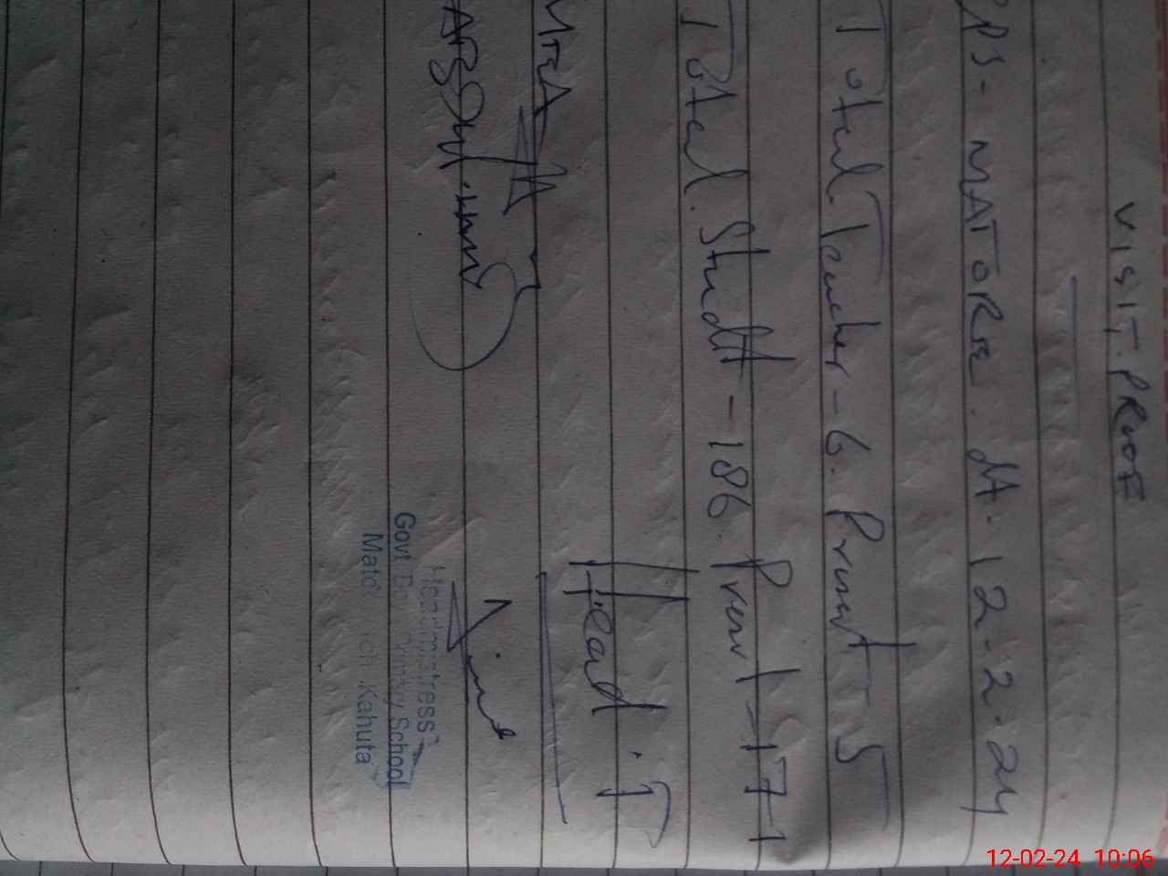 | Attendance Register | Head Teacher | MEA with School | Visit Proof |