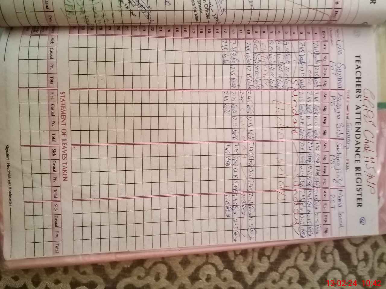 | Name: La**** Su**** Designation: (School Headmaster's/Headmistress's) PST Phone/Cell Number: 03**** |