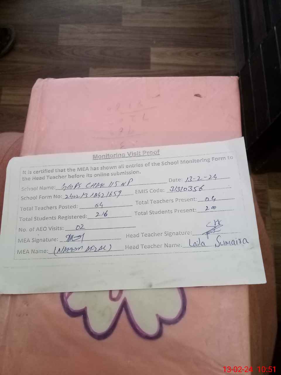 | EMIS Code: 31310356 | Name of School: GGPS CHAK NO.115/NP (After Noon) | |||