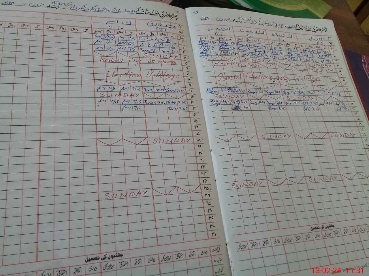 | CNIC | Full Name | Designation | R/C | Absence During Last Calender Month |