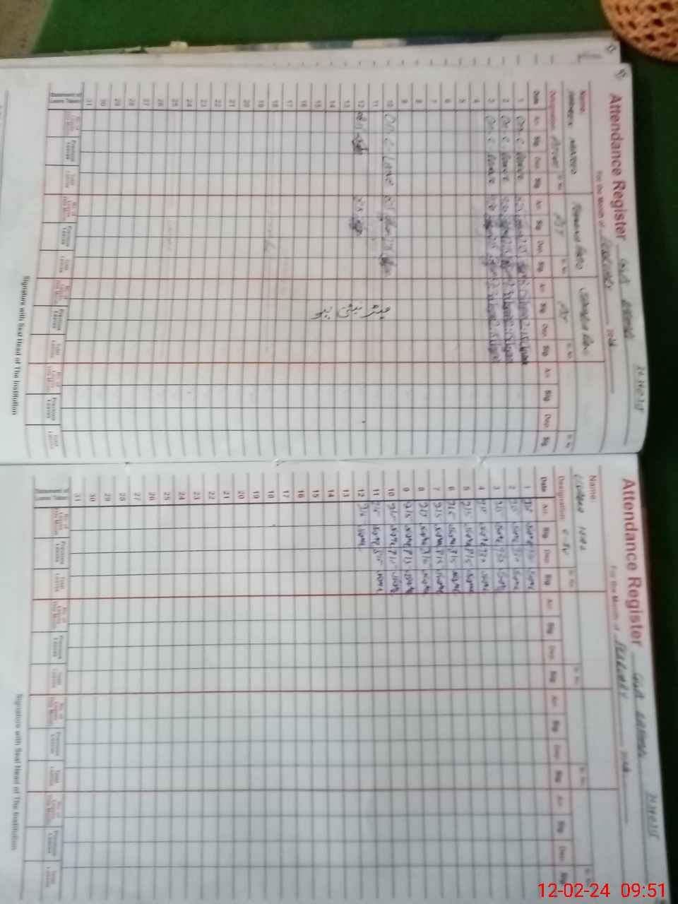 | CNIC | Full Name | Designation | R/C | Absence During Last Calender Month |
