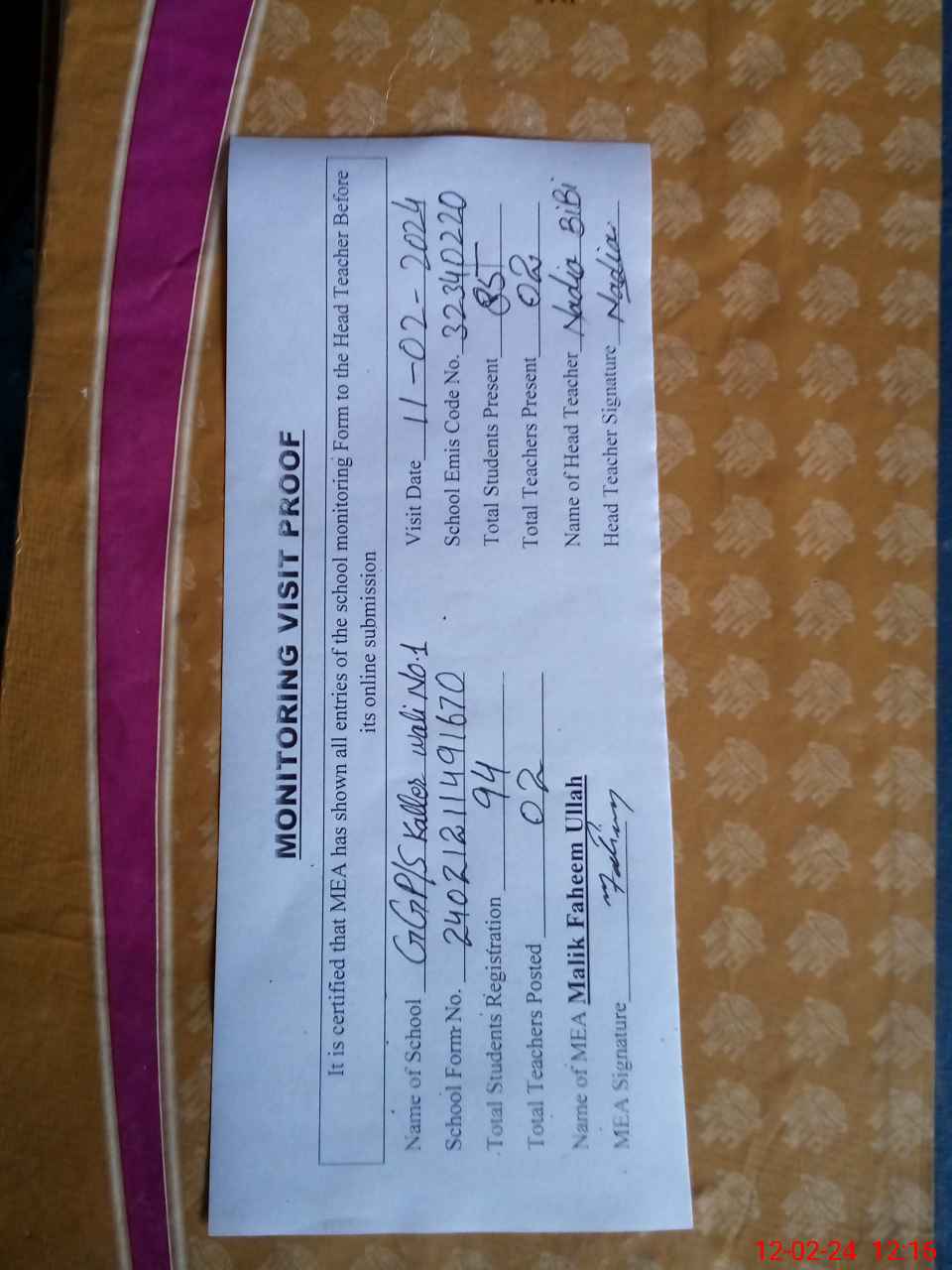 | EMIS Code: 32340220 | Name of School: GGPS KALLAR WALI NO. 1 | |||