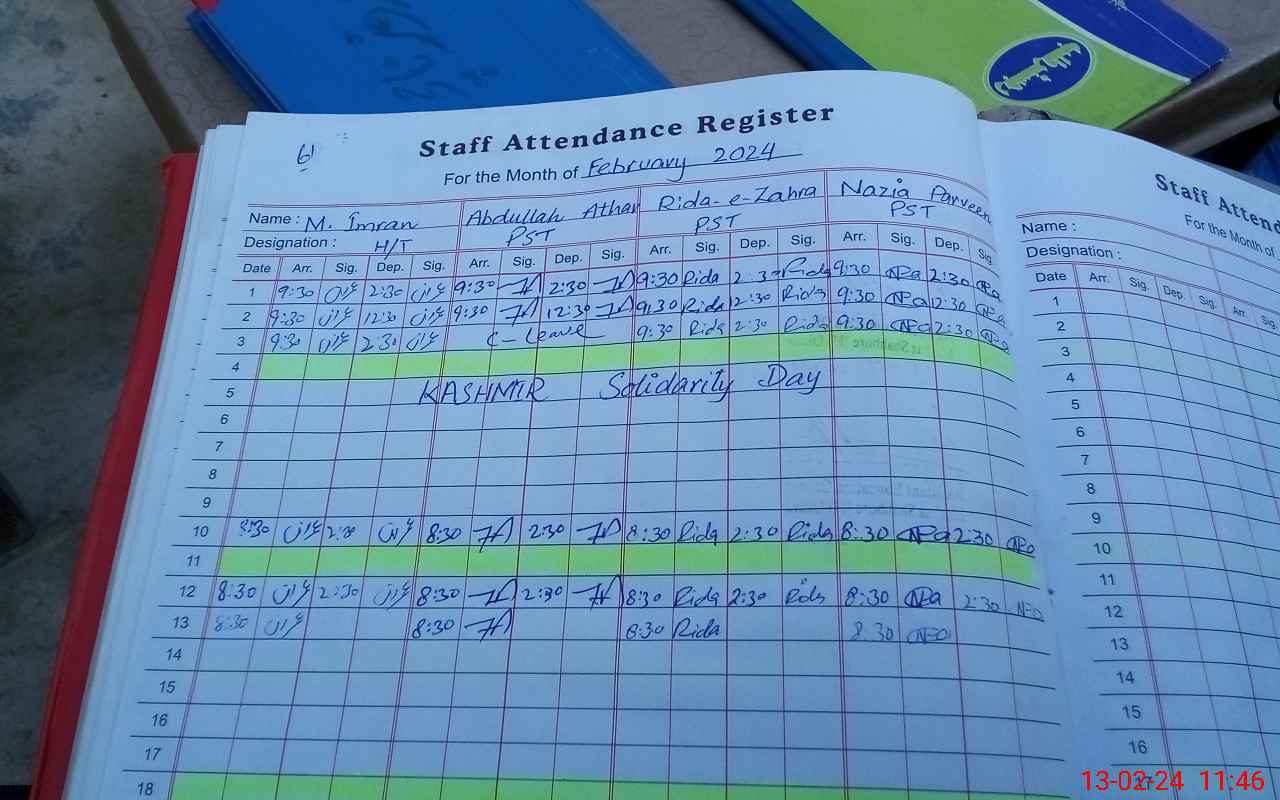 | CNIC | Full Name | Designation | R/C | Absence During Last Calender Month |