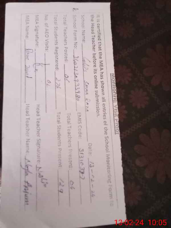 | Certified that this School was Inspected by the Undersigned MEA/DMO Today and the Information Stated Above is as Per Record. | |||||