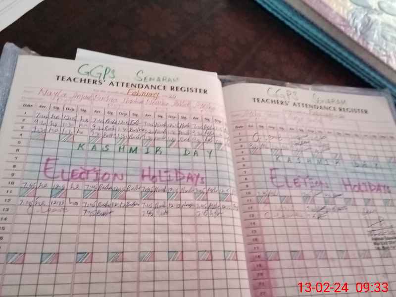 | Total no. of Classrooms: 4 No. of Classrooms Used for Teaching: 4 No. of Classrooms Storing Old Furniture, FTBs, etc: 0Comments if Any: Satisfactory and NSB cash book is incomplete and FTF record not available |