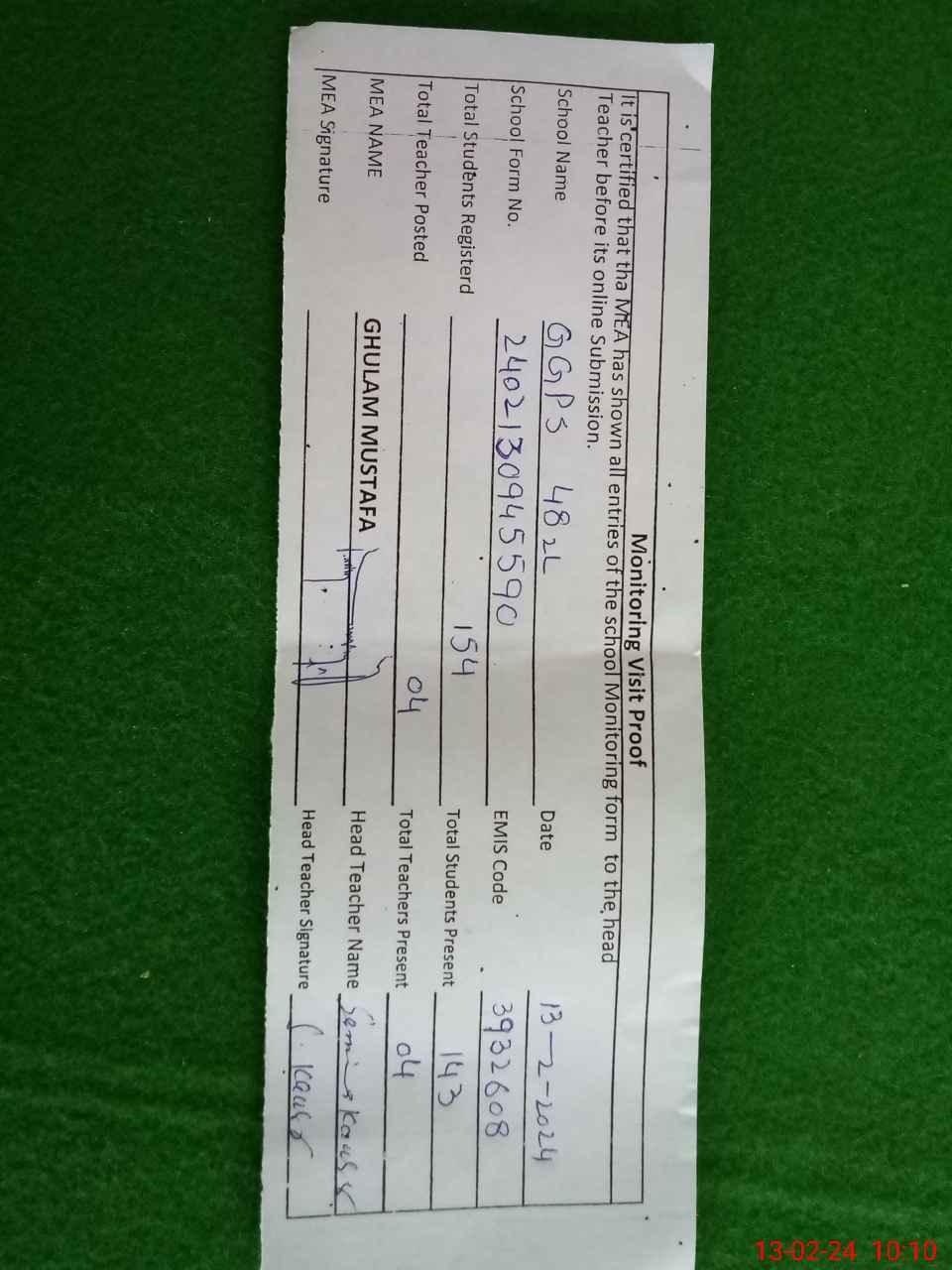 | Certified that this School was Inspected by the Undersigned MEA/DMO Today and the Information Stated Above is as Per Record. | |||||