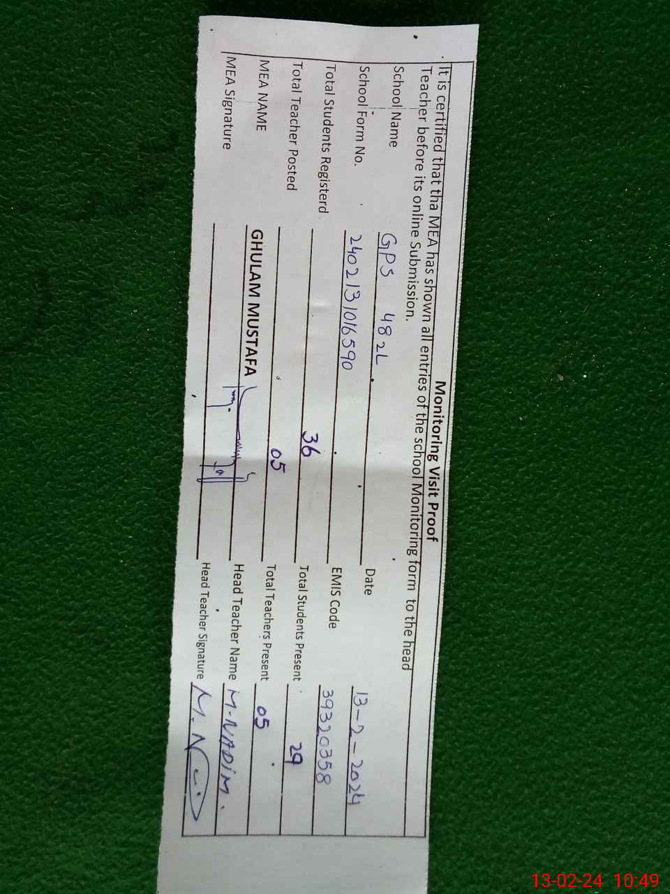 | Certified that this School was Inspected by the Undersigned MEA/DMO Today and the Information Stated Above is as Per Record. | |||||