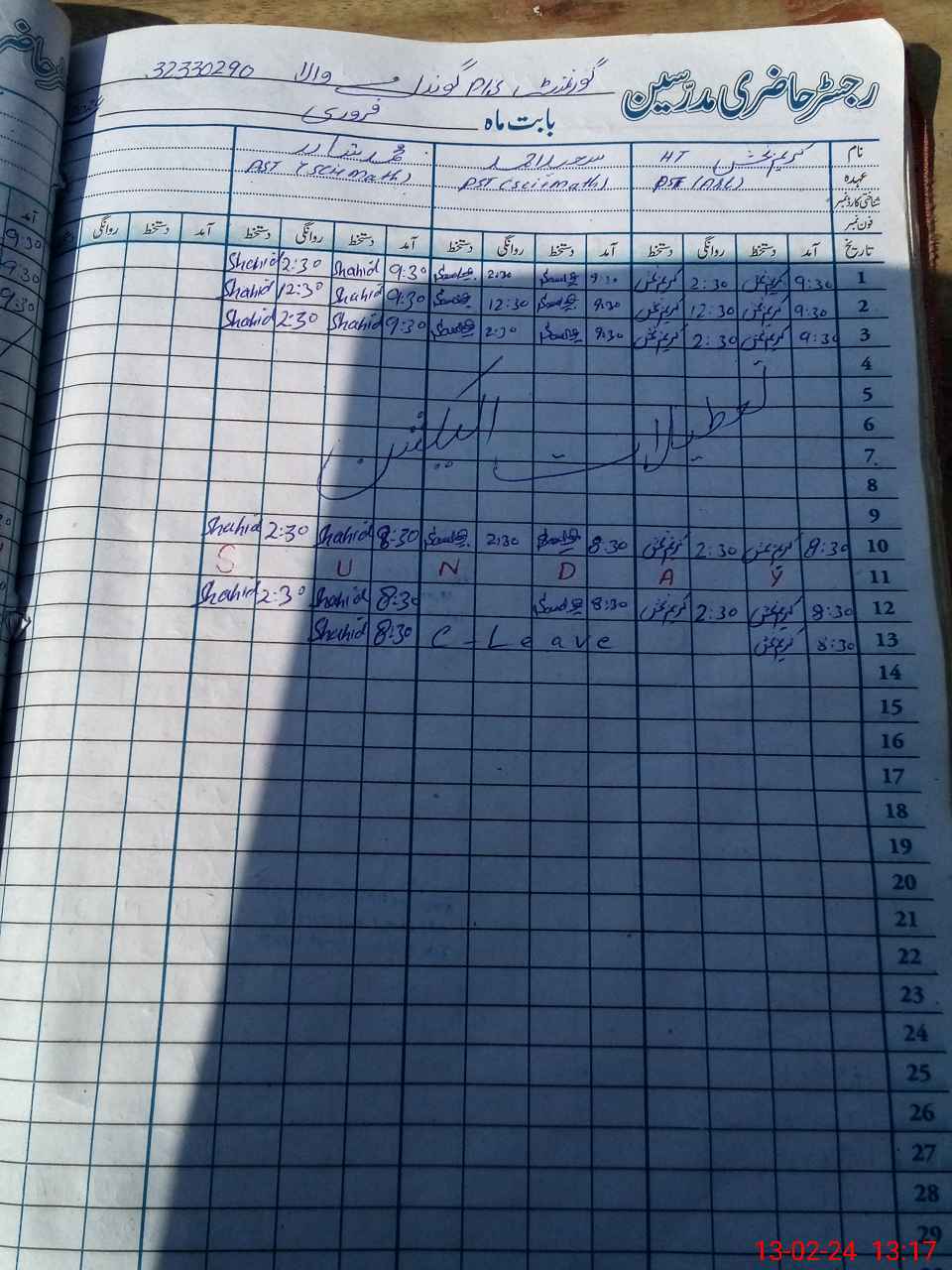 | CNIC | Full Name | Designation | R/C | Absence During Last Calender Month |