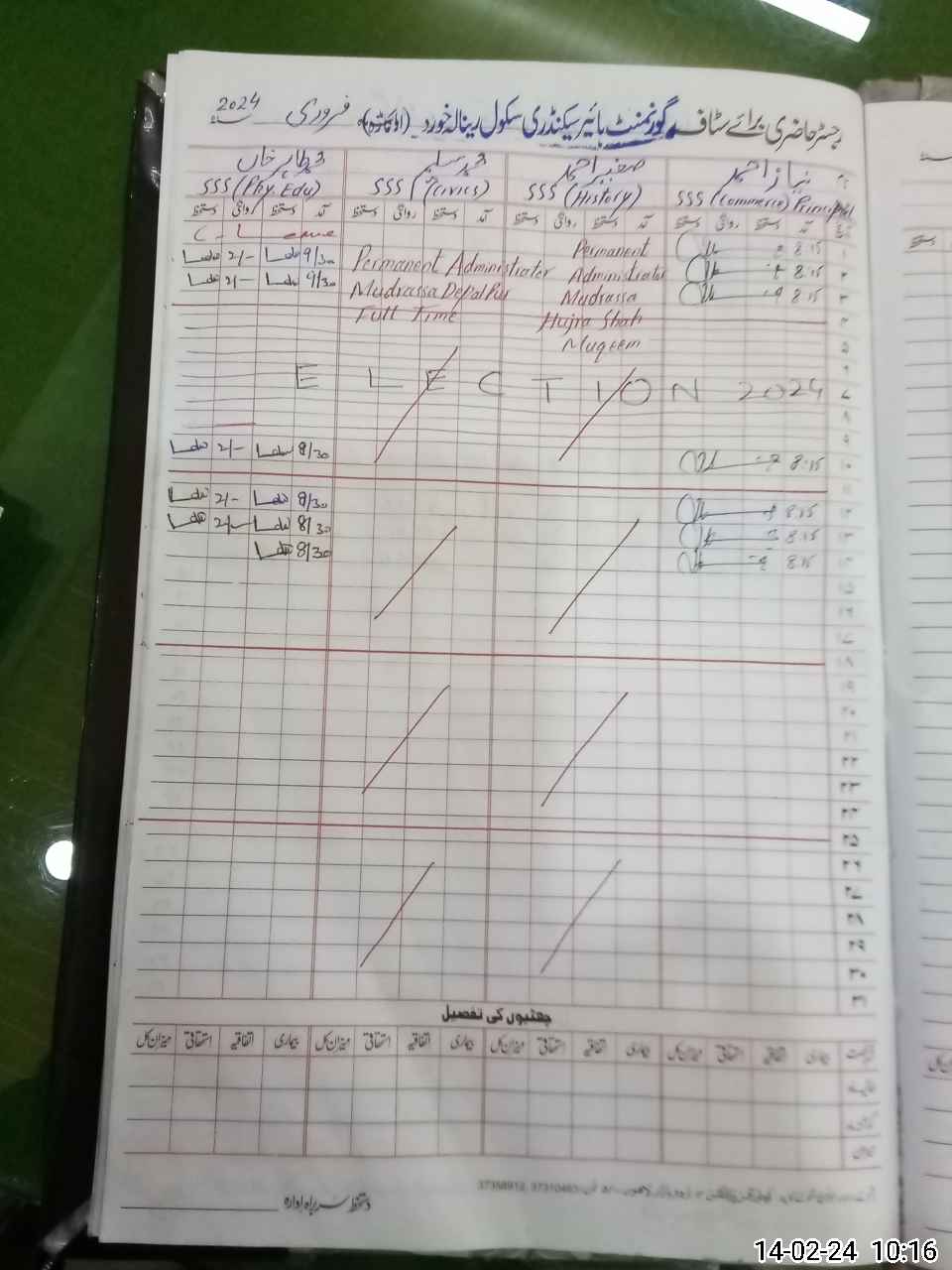 | CNIC | Full Name | Designation | R/C | Absence During Last Calender Month |