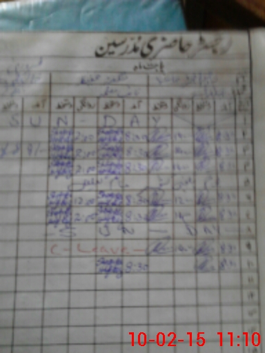 | CNIC | Full Name | Designation | R/C | Absence During Last Calender Month |