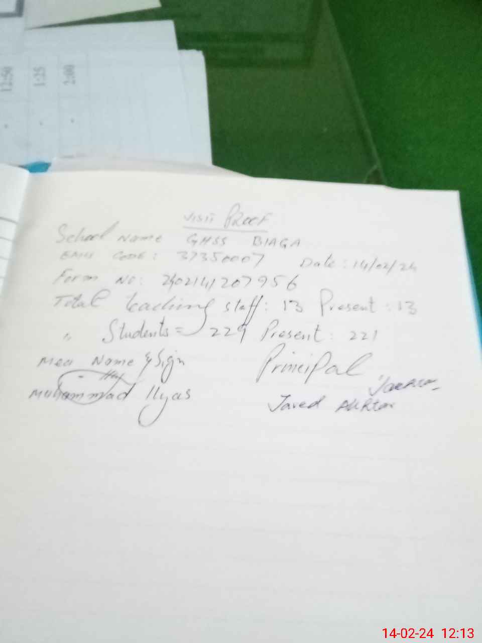| Attendance Register | Head Teacher | MEA with School | Visit Proof |
