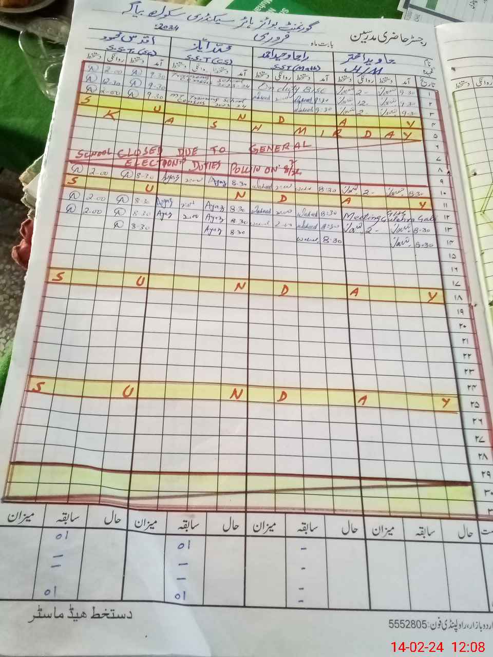 | CNIC | Full Name | Designation | R/C | Absence During Last Calender Month |