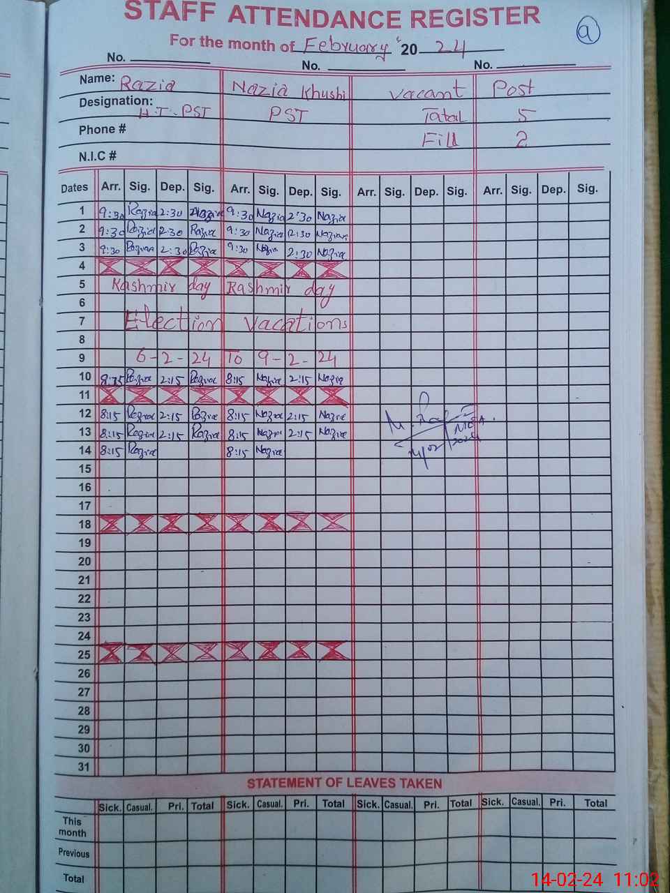 | Name: Na**** Kh**** Designation: (School Headmaster's/Headmistress's) PST Phone/Cell Number: 03**** |