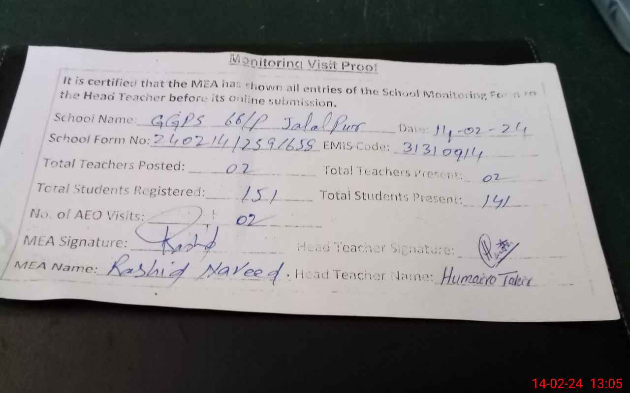 | EMIS Code: 31310914 | Name of School: GGPS 66/P JALAL PUR | |||
