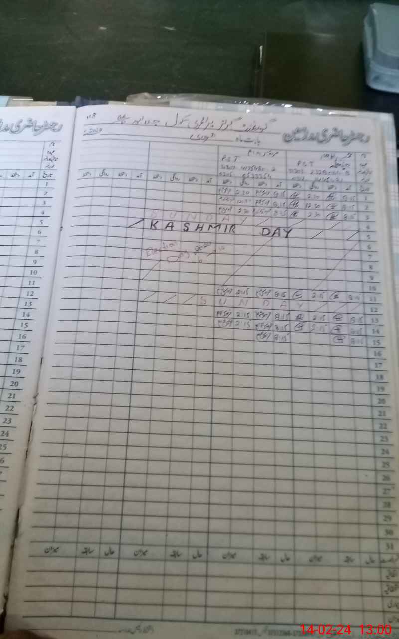 | CNIC | Full Name | Designation | R/C | Absence During Last Calender Month |