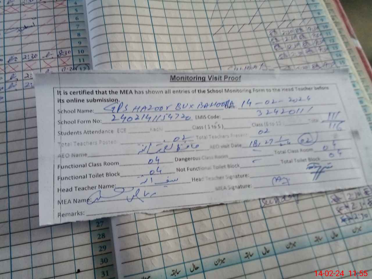 | EMIS Code: 32420111 | Name of School: GPS HAZOOR BAKHSH BALHORA | |||