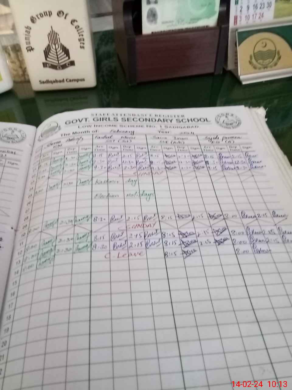 | CNIC | Full Name | Designation | R/C | Absence During Last Calender Month |