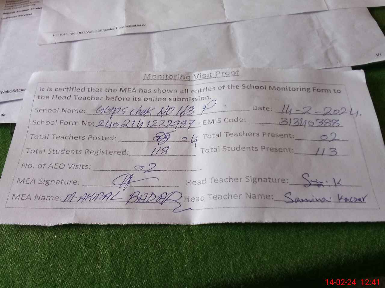 | EMIS Code: 31340388 | Name of School: GGPS CHAK 168/P | |||