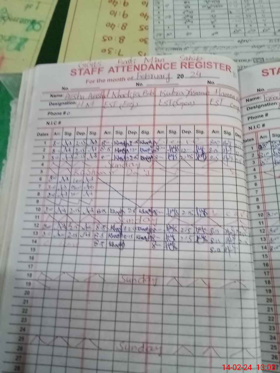 | CNIC | Full Name | Designation | R/C | Absence During Last Calender Month |