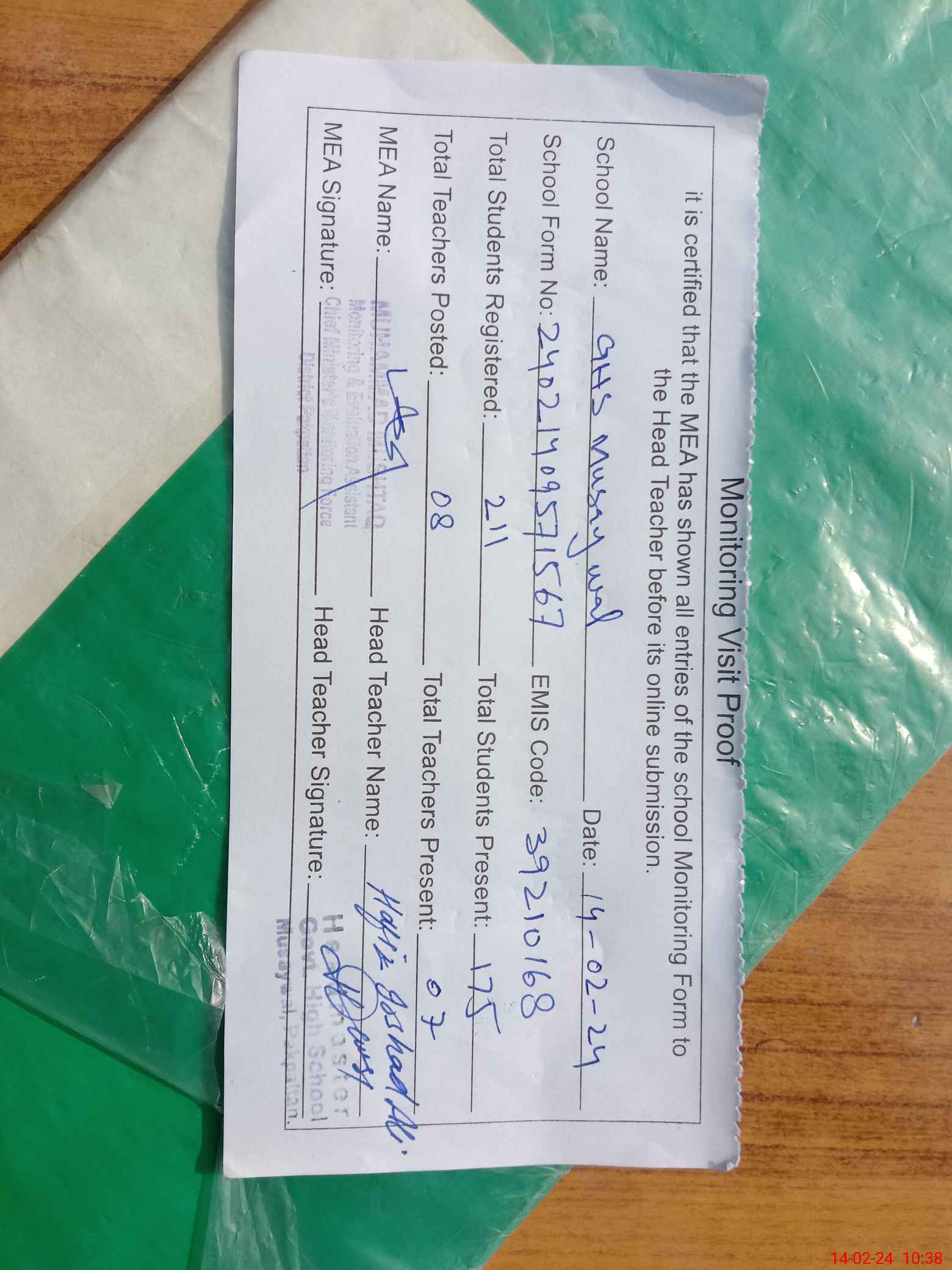 | EMIS Code: 39210168 | Name of School: GHS MUSAY WAL P/O 39/SP PAKPATTAN | |||