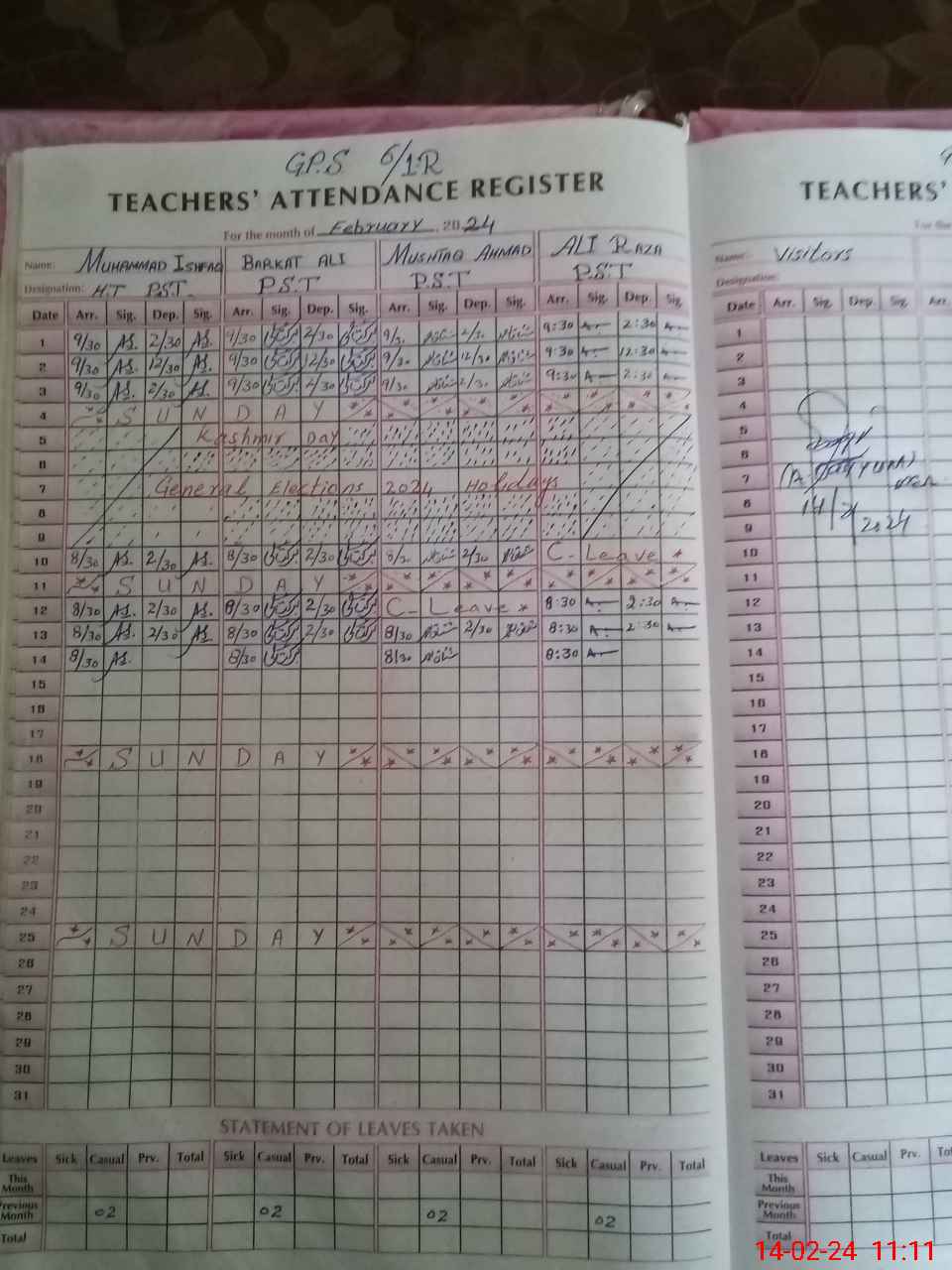 | CNIC | Full Name | Designation | R/C | Absence During Last Calender Month |
