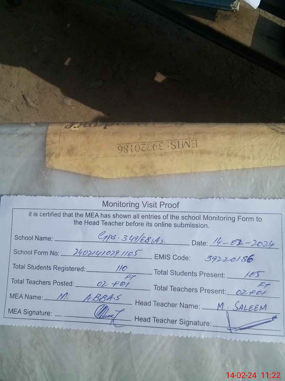 | EMIS Code: 39220186 | Name of School: GPS 349 A EB | |||