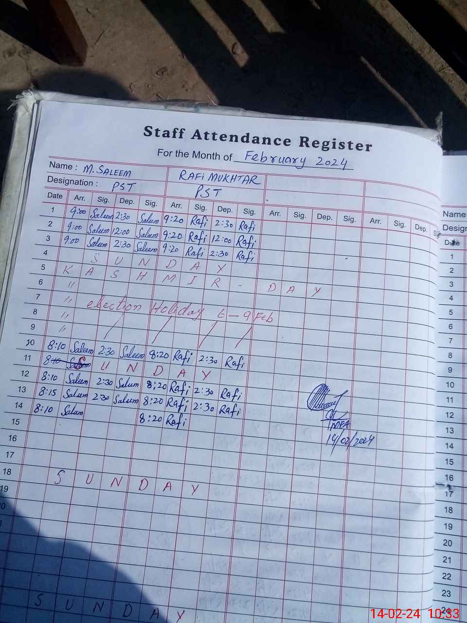 | Name: MU**** SA**** Designation: (School Headmaster's/Headmistress's) PST Phone/Cell Number: 03**** |