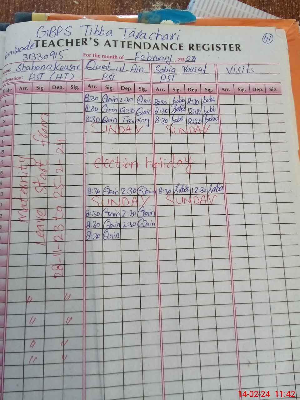 | 31**** | Sh**** Ka**** | PST | Regular | 31 | 0 | 0 | 31 | 0 | 0 | 0 | 0 | 0 | Maternity |