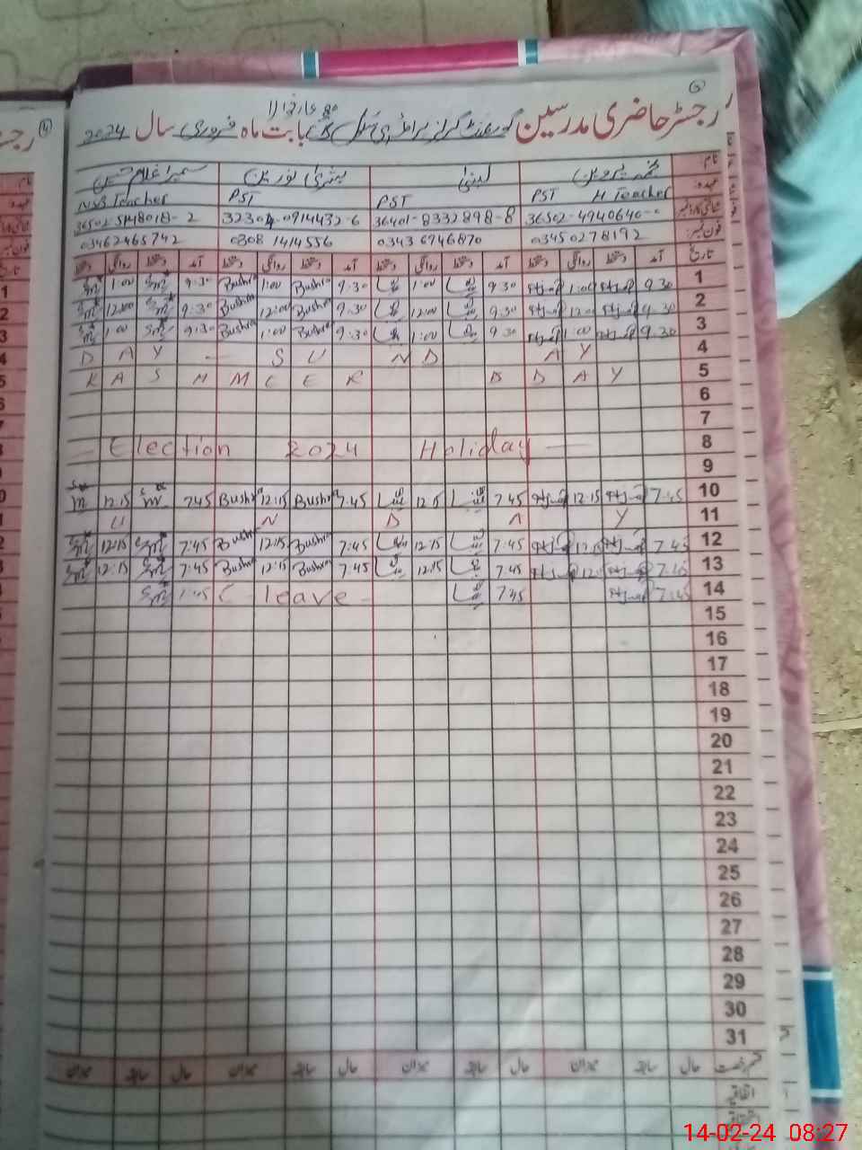 | 32**** | Bu**** No**** | PST | Regular | 2 | 0 | 0 | 0 | 0 | 0 | 0 | 0 | 2 | Casual |