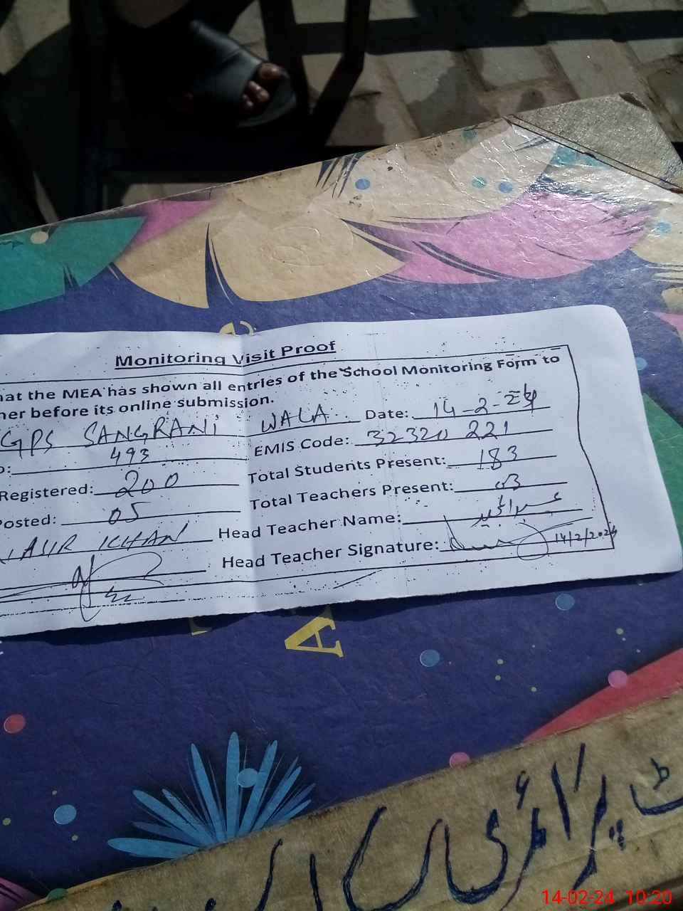 | Attendance Register | Head Teacher | MEA with School | Visit Proof |