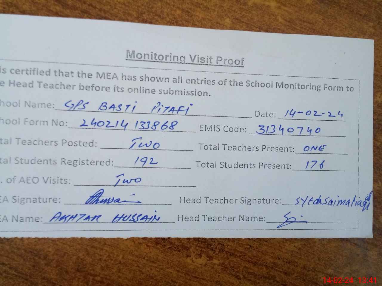 | EMIS Code: 31340740 | Name of School: GPS BASTI PATAFI | |||