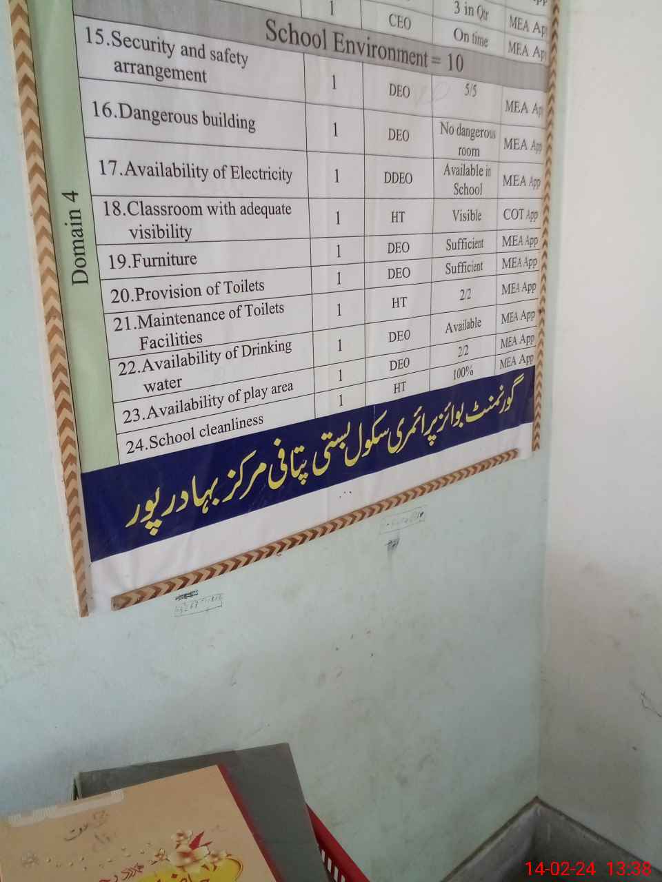 | District: RAHIMYAR KHAN | Tehsil: SADIQABAD | Markaz: BAHADAR PUR-MALE | Level: Primary | |