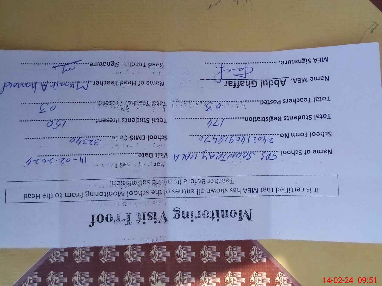 | EMIS Code: 32340107 | Name of School: GPS SONTRAY WALA | |||