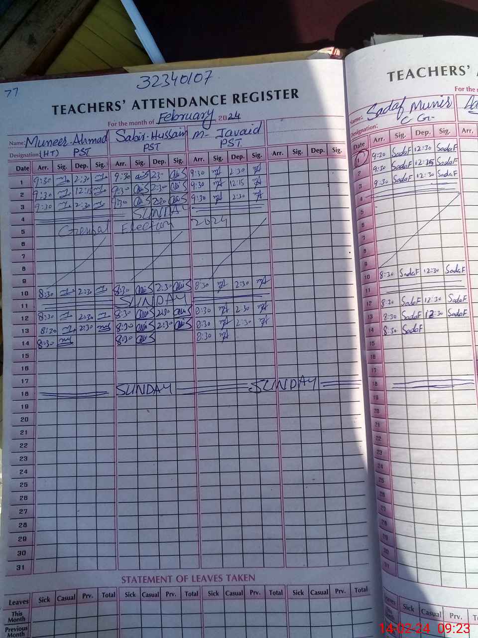 | Name: MU**** AH**** Designation: (School Headmaster's/Headmistress's) PST Phone/Cell Number: 03**** |