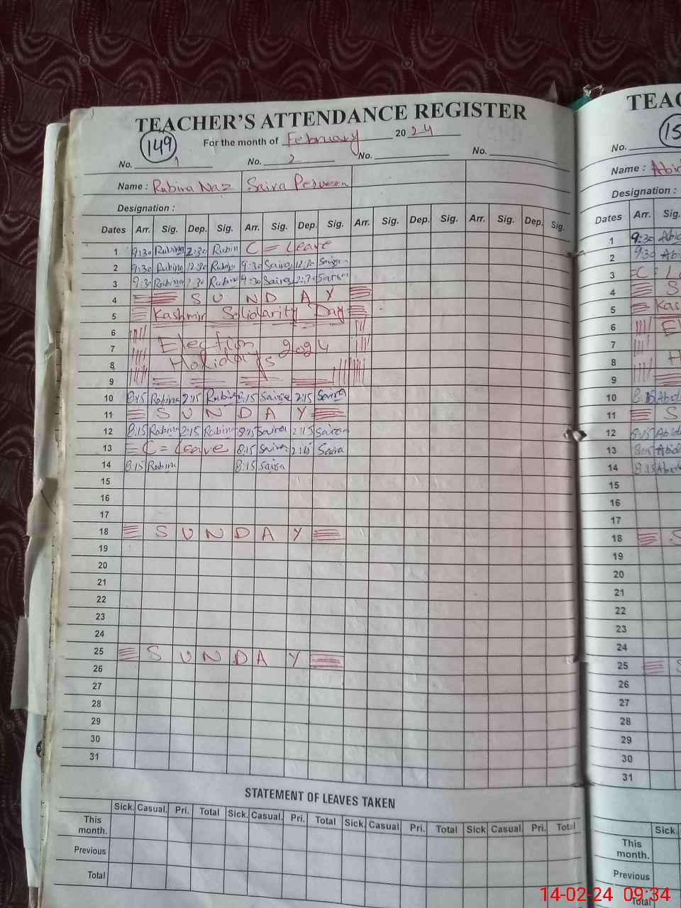 | Leave | Duty | Absent | Maternity | Medical | Ex- Pak |