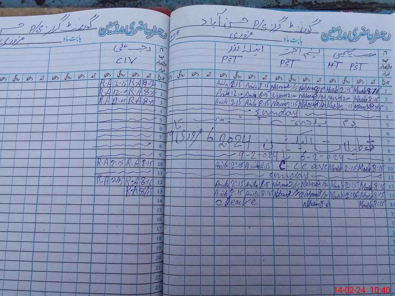 | CNIC | Full Name | Designation | R/C | Absence During Last Calender Month |