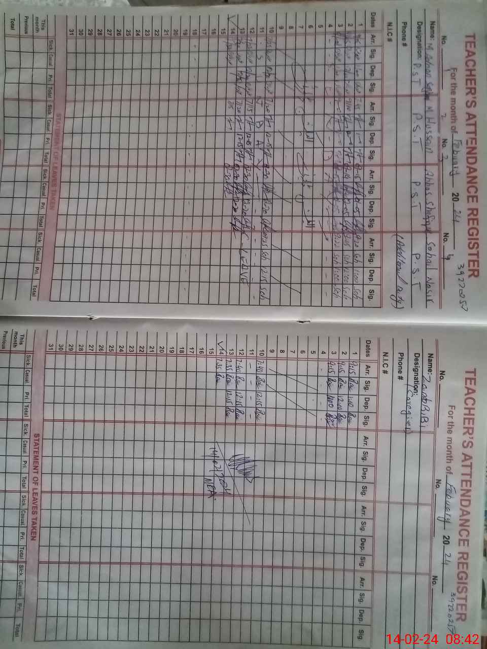 | CNIC | Full Name | Designation | R/C | Absence During Last Calender Month |
