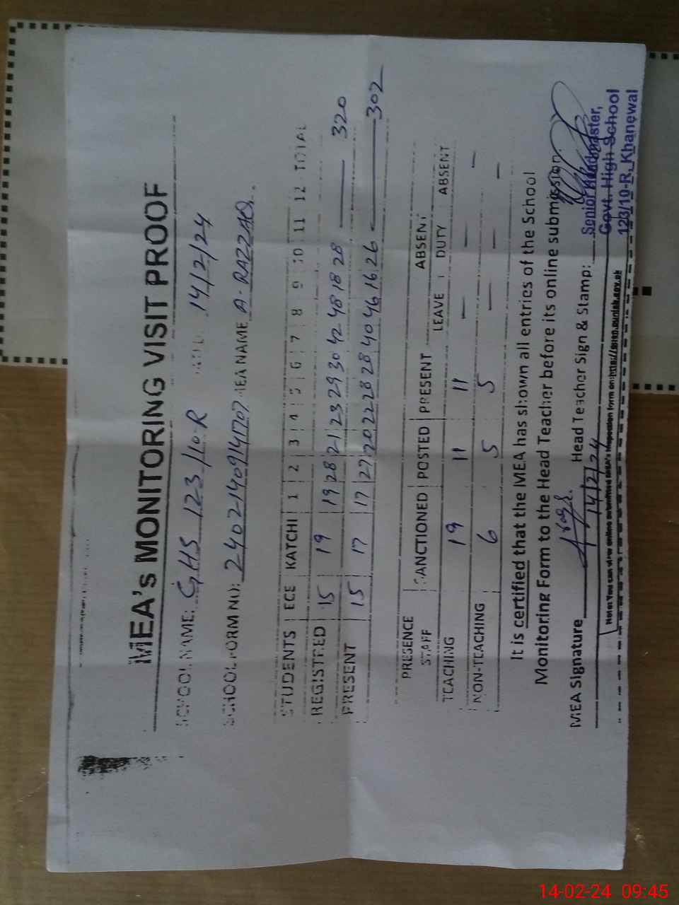 | EMIS Code: 36440038 | Name of School: GHS 123/10-R, JAHANIAN | |||