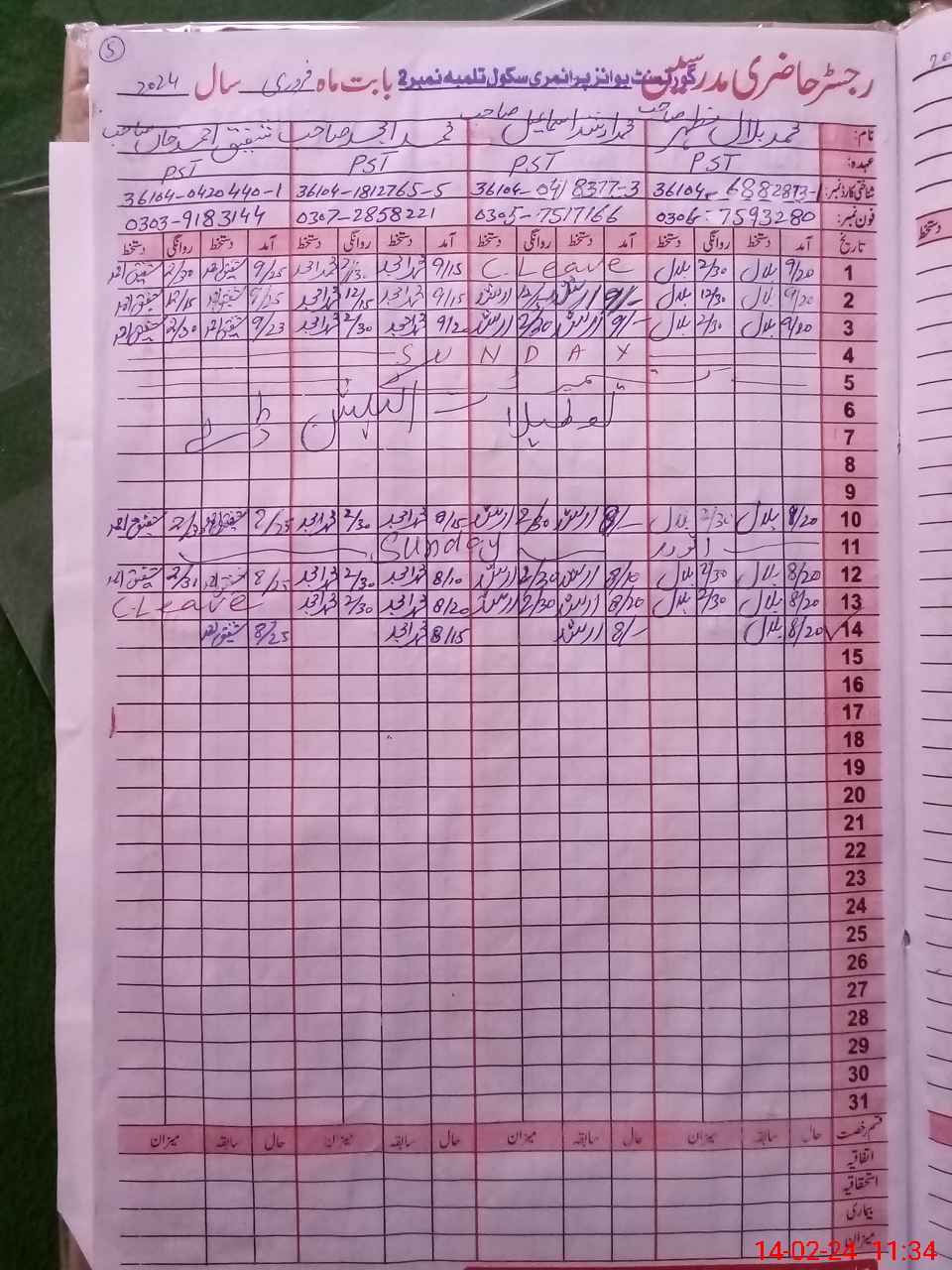 | Name: MU**** BI**** MA**** Designation: (School Headmaster's/Headmistress's) PST Phone/Cell Number: 03**** |