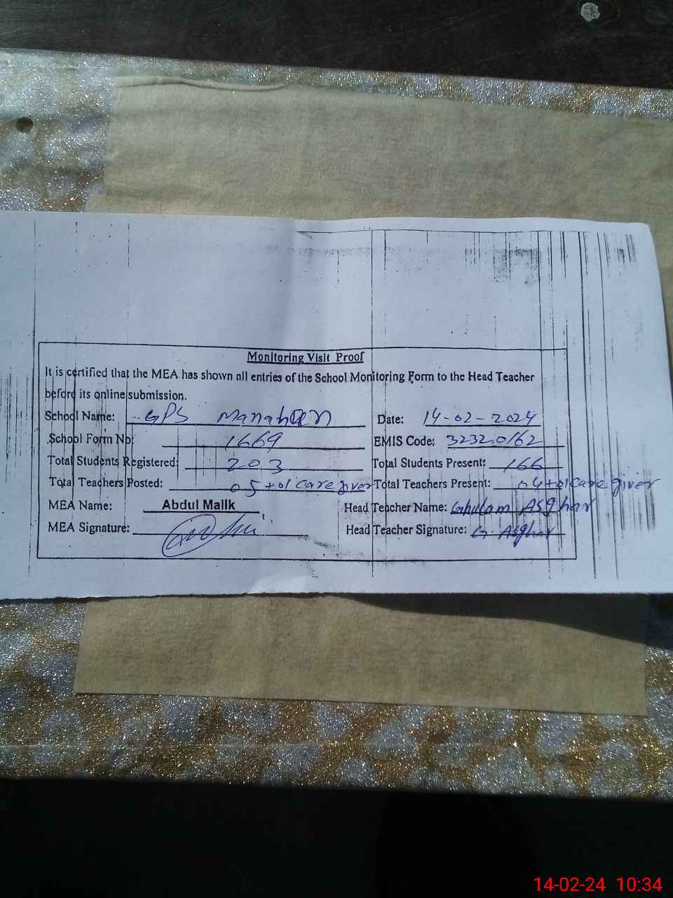 | EMIS Code: 32320162 | Name of School: GPS MANAH | |||