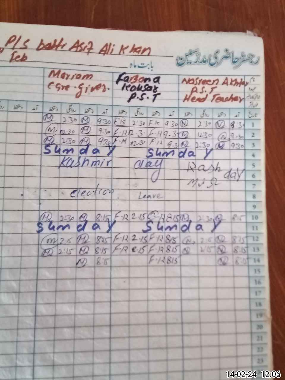 | Name: NA**** AK**** Designation: (School Headmaster's/Headmistress's) PST Phone/Cell Number: 03**** |