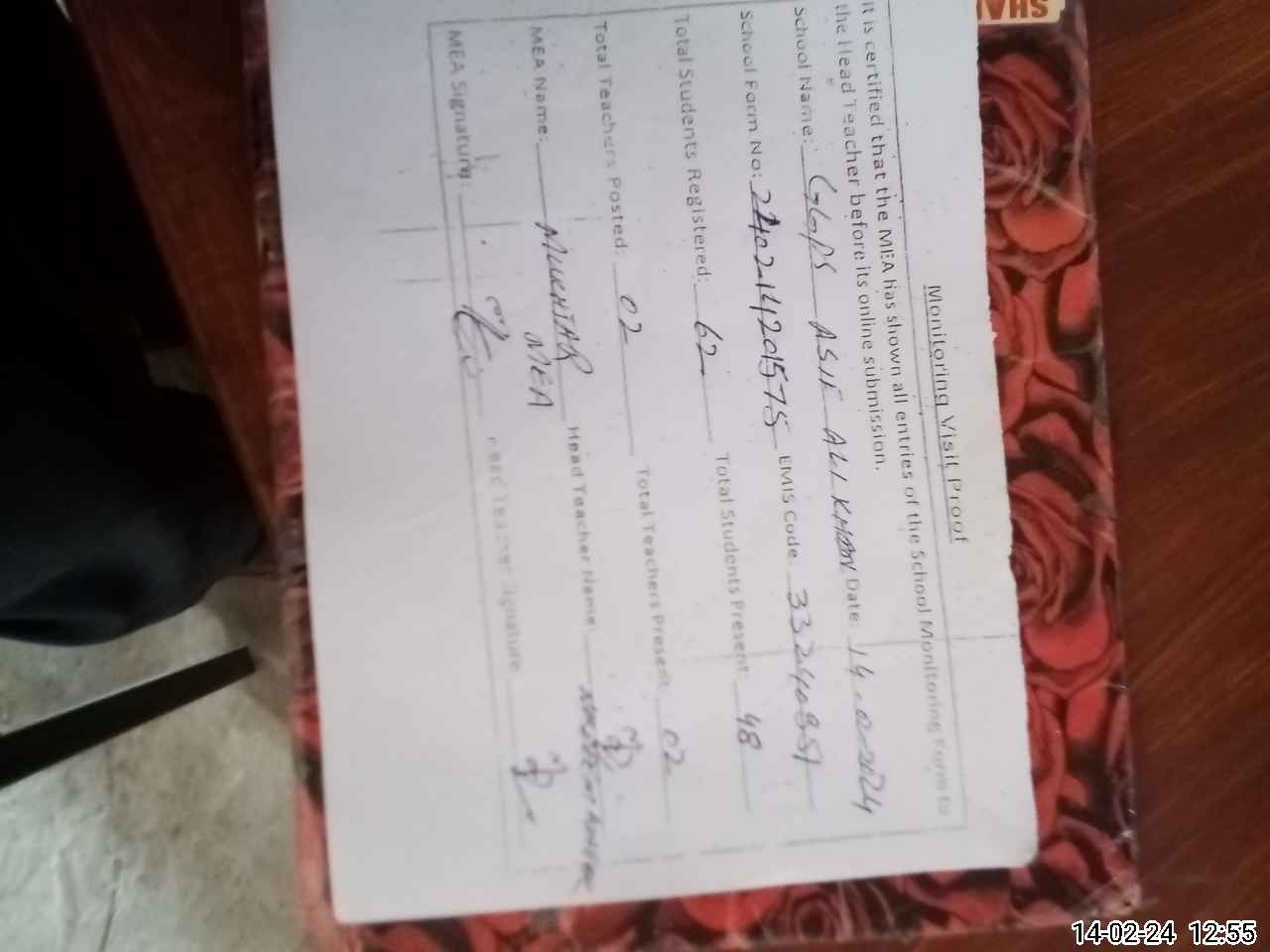 | Certified that this School was Inspected by the Undersigned MEA/DMO Today and the Information Stated Above is as Per Record. | |||||