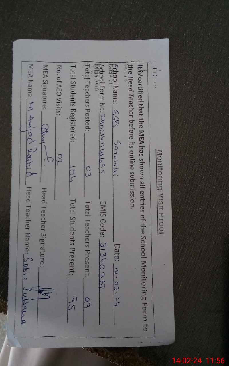 | EMIS Code: 31340367 | Name of School: GGPS SARWAHI | |||