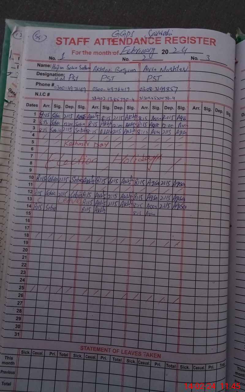 | Name: Ha**** So**** Su**** Designation: (School Headmaster's/Headmistress's) PST Phone/Cell Number: 03**** |